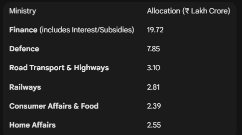 Transfer to States: ₹26.2 lakh crore (a 12.2% increase), including ₹1.85 lakh crore in interest-free loans for capital projects.