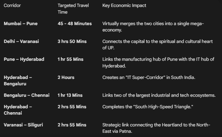 The Ministry of Railways received a record allocation of ₹2.93 lakh crore. A key feature is the announcement of seven High-Speed Rail (HSR) Corridors, called “Growth Connectors,” which aim to cut travel time between major economic centers to under 2-4 hours.